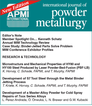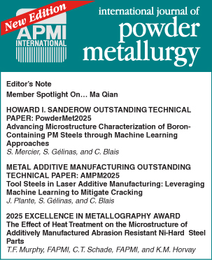The International Journal of Powder Metallurgy is published four times a year, bringing you the latest news in the powder metallurgy (PM) and particulate materials industries.